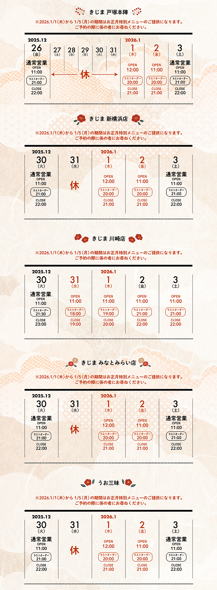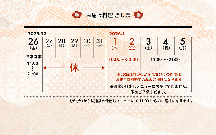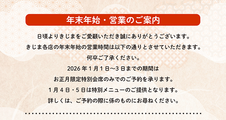 年末年始・営業のご案内